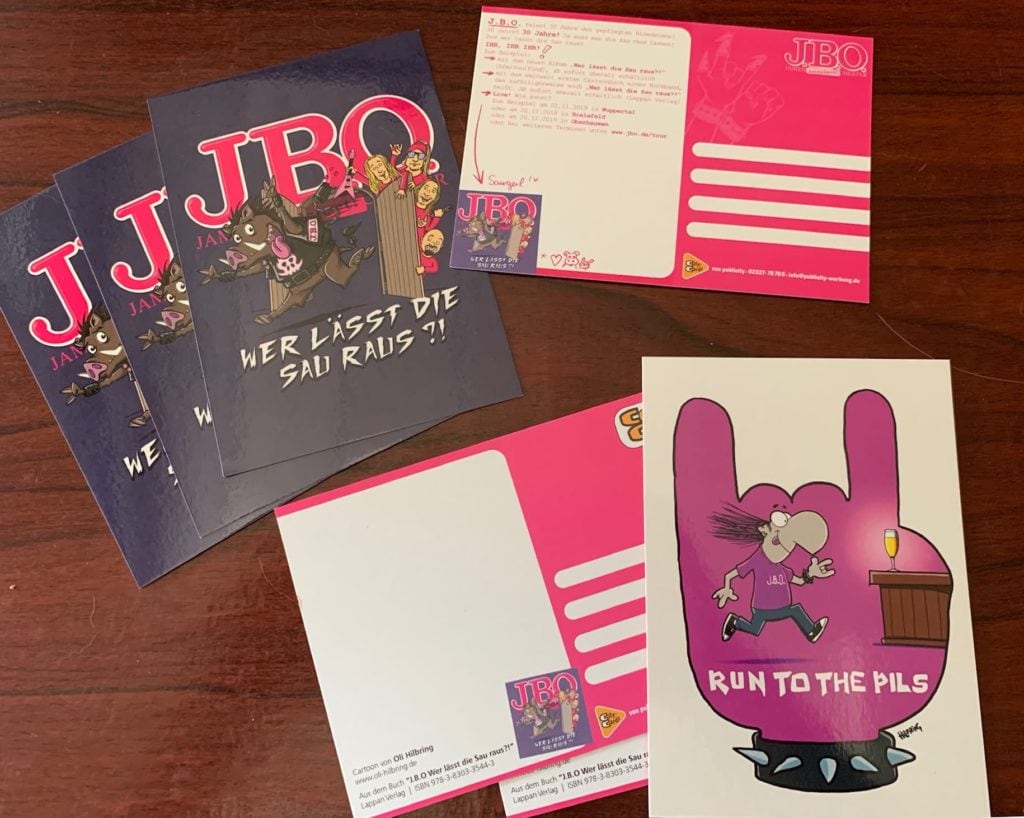 Im Ruhrgebiet, dort wo es CityCards gibt, könnt ihr euch derzeit kostenlose Postkarten mit dem Motiv des Albums und des Cartoonbuchs „Wer lässt die Sau raus?!“ und weitere Karten mit Motiven aus dem Cartoonbuch(*) sichern. Kostenlos. Im Ruhrgebiet. Überall wo es CityCards gibt. So lange Karten da sind. Also am besten gleich mal vorbei schauen 😊